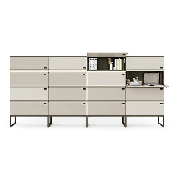 Das Schranksystem aus Stahl für zonenbasierte Raumkonzepte.